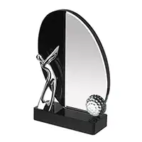 Features silver metal golf figure and clear crystal golf ball on a black crystal base