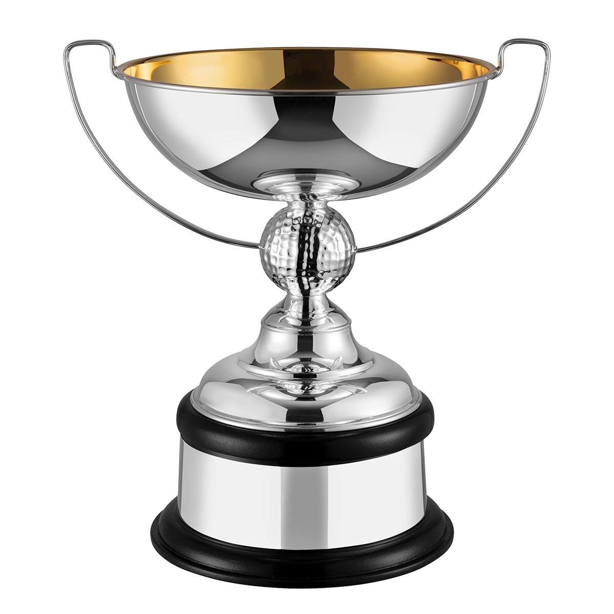Gold plated inside the bowl with hand chased golf ball column in a similar style to the Fedex cup.