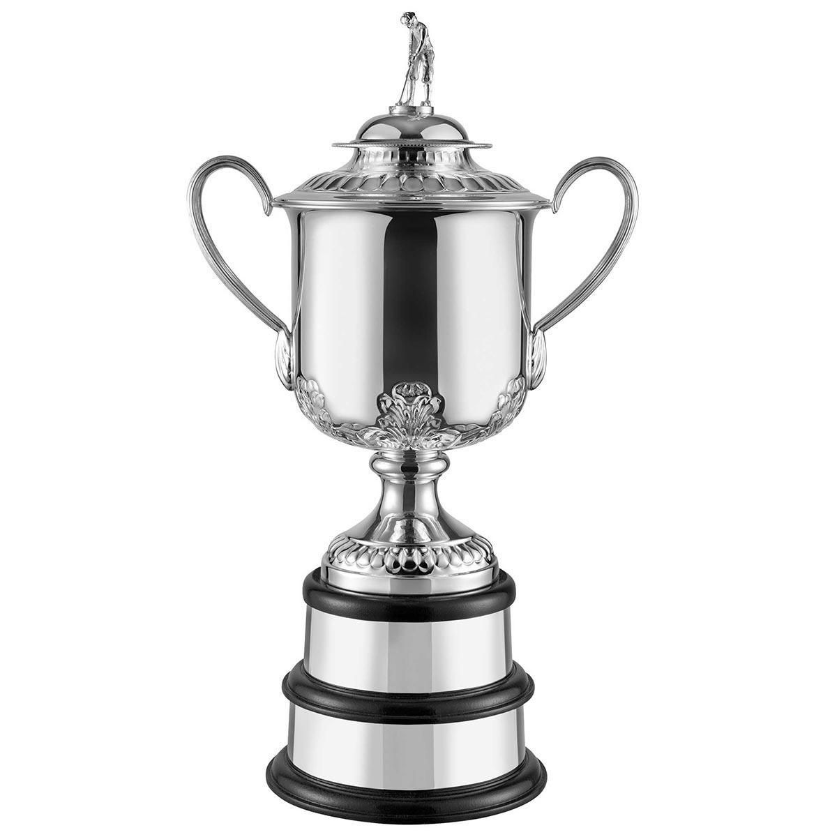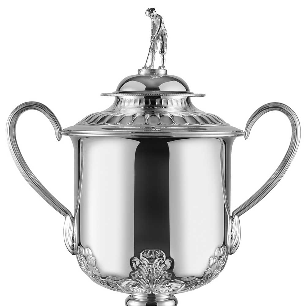 Topped with a traditional golfer figure mounted on the lid.
